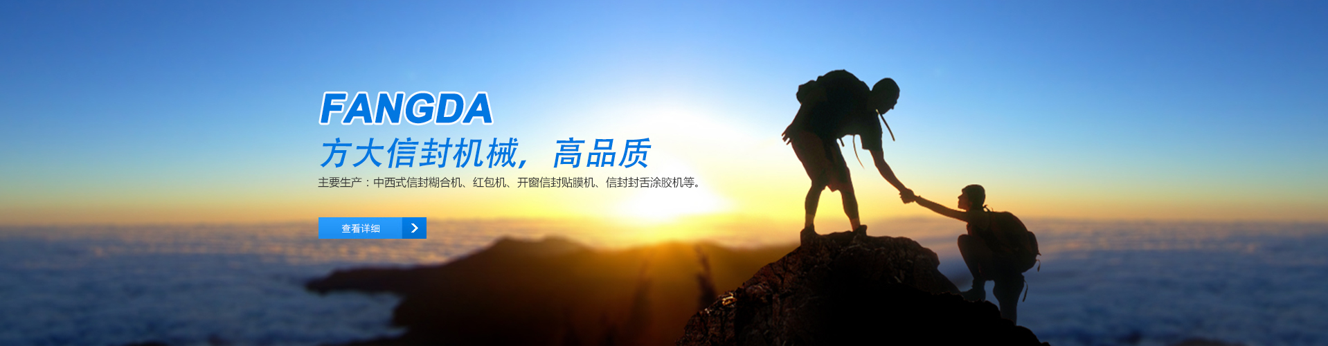 瑞安方大信封機械有限公司,是專業(yè)生產信封機糊合設備系列產品的企業(yè),主要產品有:中西式信封糊合機、紅包機、開窗信封貼膜機、信封封舌涂膠機等。實力來自規(guī)模,品質源自專業(yè)。我廠擁有專業(yè)老練的工程設計人員,經驗豐富的生產安裝人員,嚴謹認真的質量檢驗人員,從而保證了所生產機械的優(yōu)良品質。此外,我廠也將從技術上、性能上不斷改進提高,以更好的滿足客戶的需求?!翱蛻糁辽?,服務為本”是我廠長期一貫的服務理念,從安裝、測試、保養(yǎng)、維修等售后服務,我們會給予客戶充足的信息資訊與技術支持,因此在業(yè)界獲得良好的口碑及信譽,您的滿意是我們的榮耀!歡迎您來電查詢、來人參觀,我們一定能給你滿意的答復!秉承“顧客至上,銳意進取”的經營理念,堅持“客戶為先”的原則為廣大客戶提供溫馨的服務。歡迎惠顧!